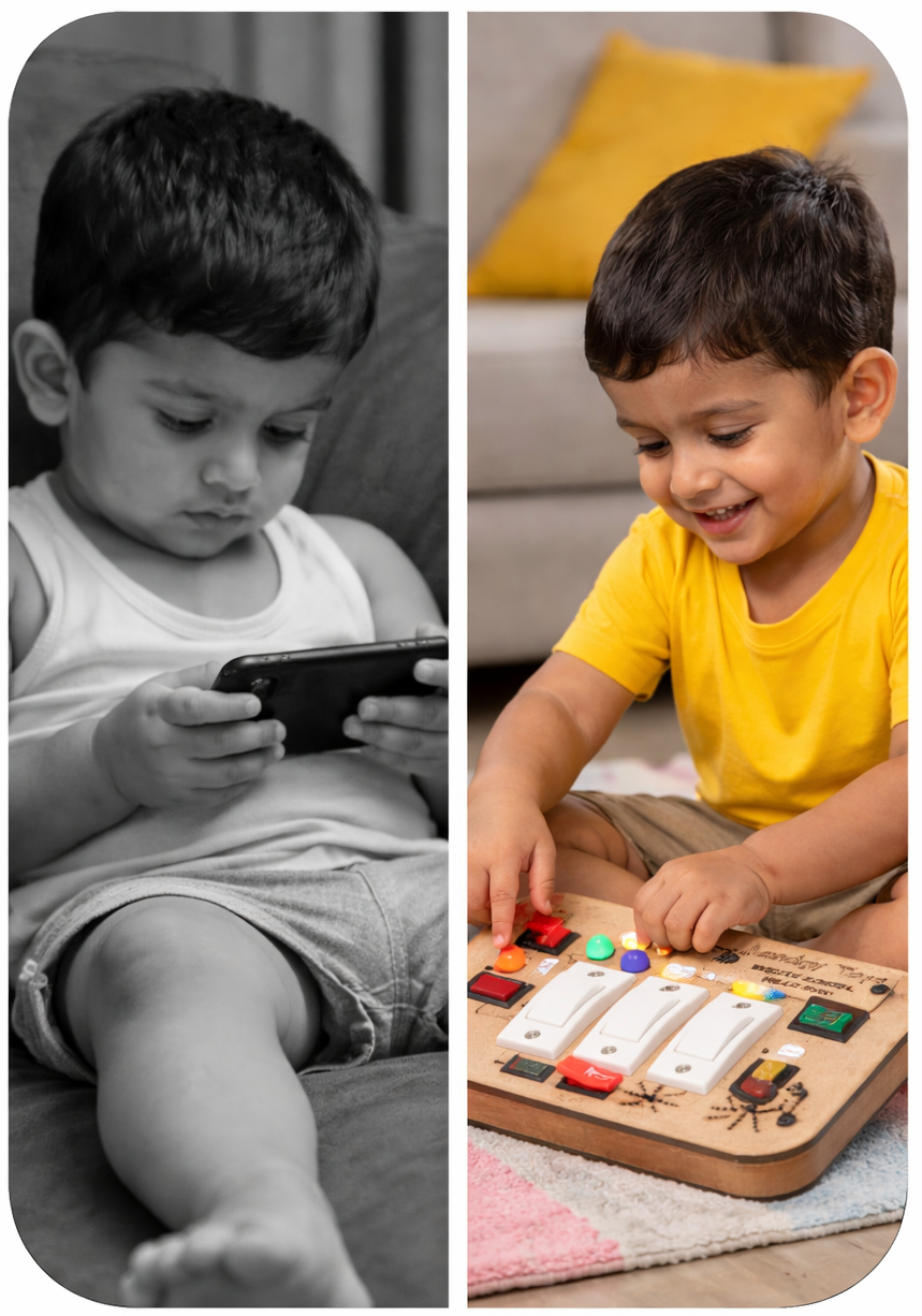 Introducing Buzz Beat – The Real Switch Edition, a Made in India busy board designed to keep kids engaged, learning, and screen-free.