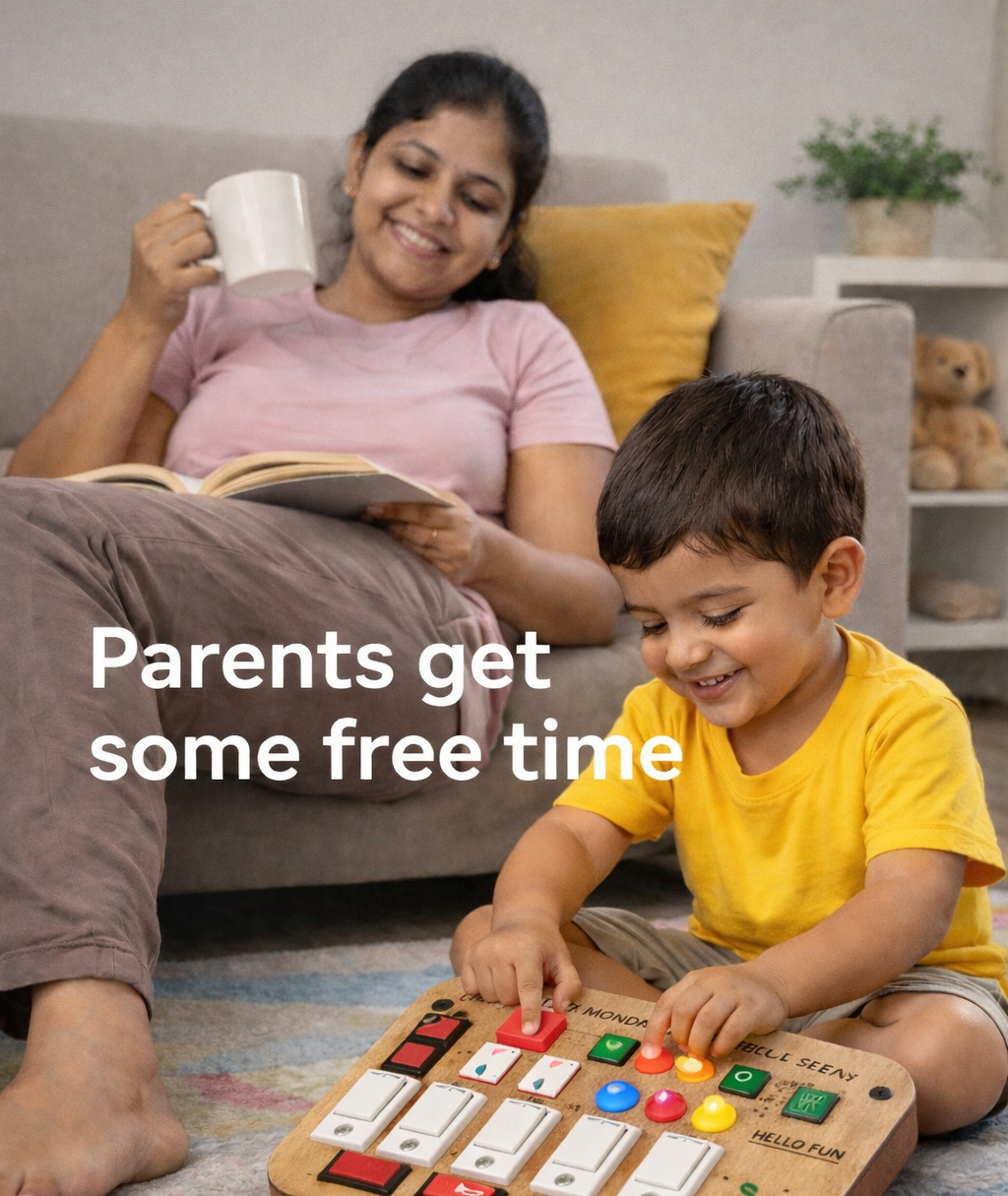 Buzz Beats turns playtime into a joyful learning experience away from phones and TV — capturing their curiosity with lights, real switches, music and vibration.