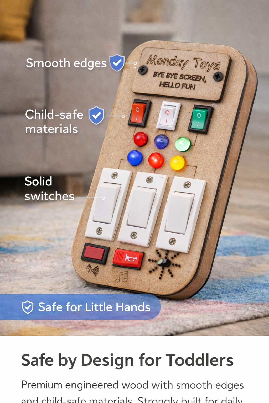 Musical Montessori Busy Board with Real Switches | Keeps Kids Away from Screen | Music • Light • Vibration • Learning | Electric Board Fun Without the Danger | India’s First Busy Board with Real Feel Switches | 6 months +